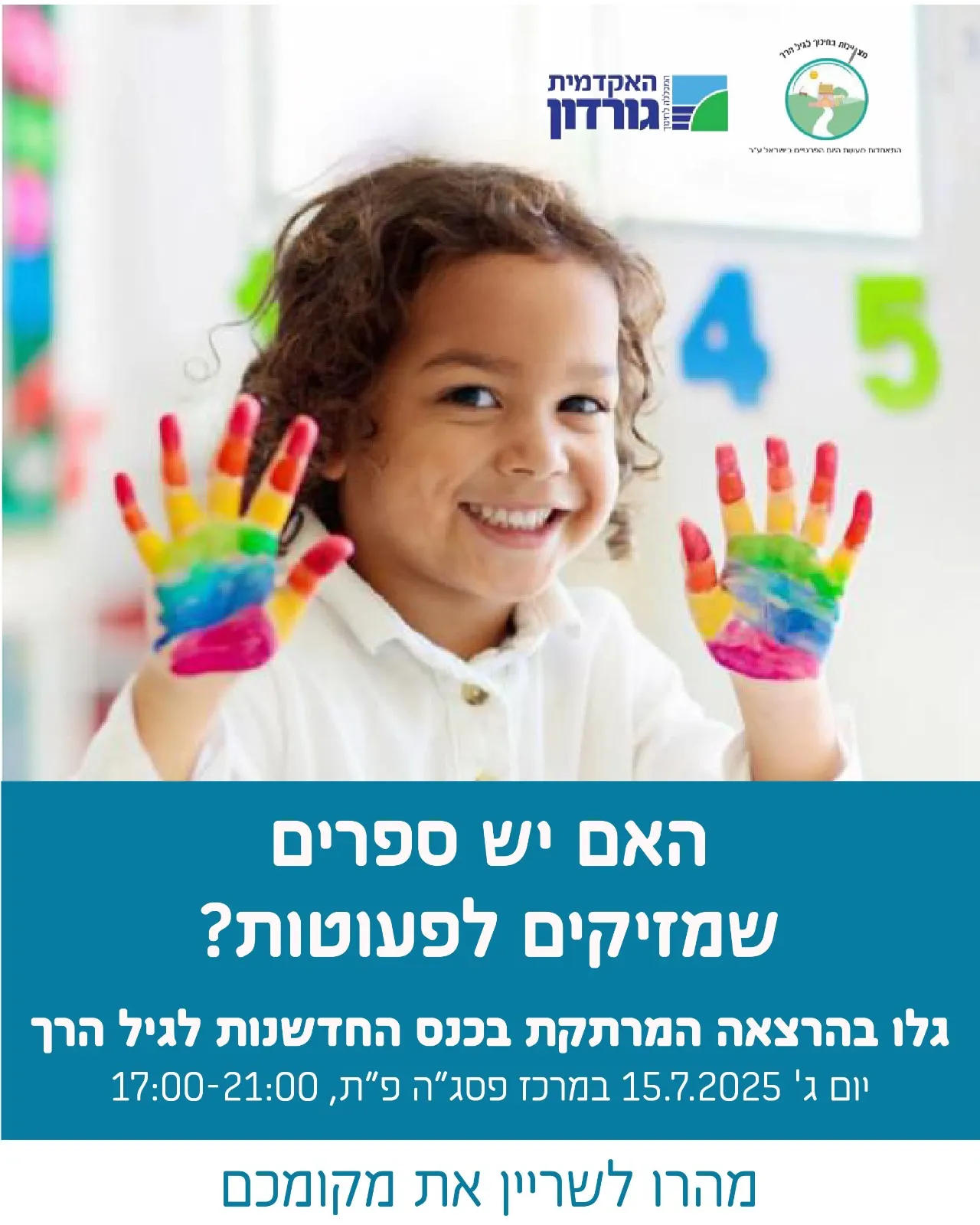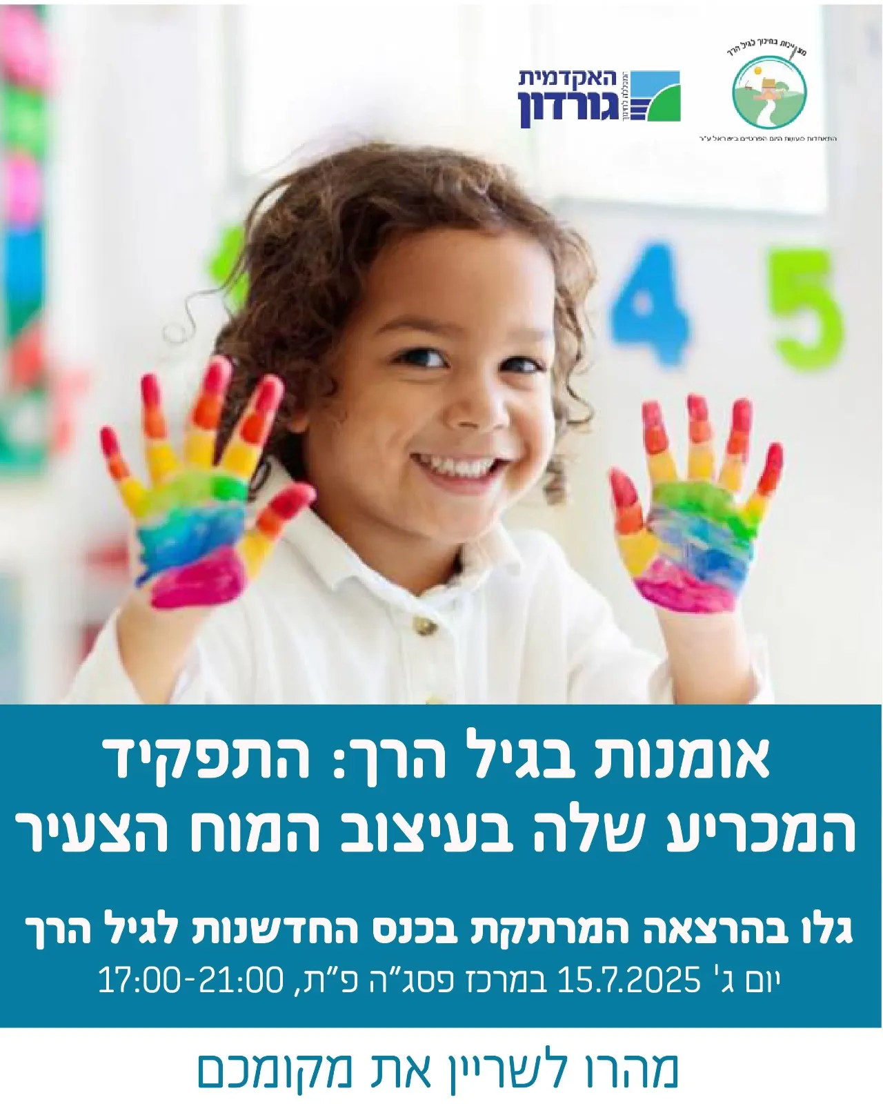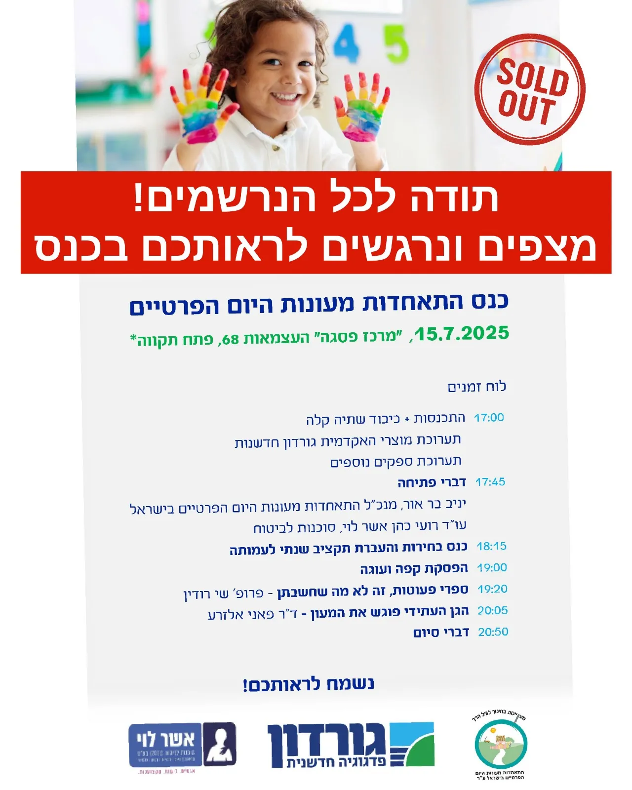 חברות וחברים יקרים, אנו שמחים ונרגשים להודיע כי הרישום הסתיים לכנס השנתי של ההתאחדות בסימן חדשנות בגיל הרך בשיתוף עם מכללת גורדון חיפה שיתקיים ביום שלישי ה 15/7/2025 במרכז פסג״ה בפתח תקווה.