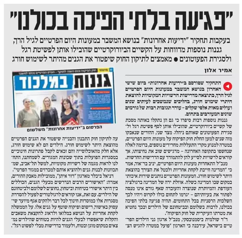 גננות במלכוד ידיעות אחרונות 8/11/19