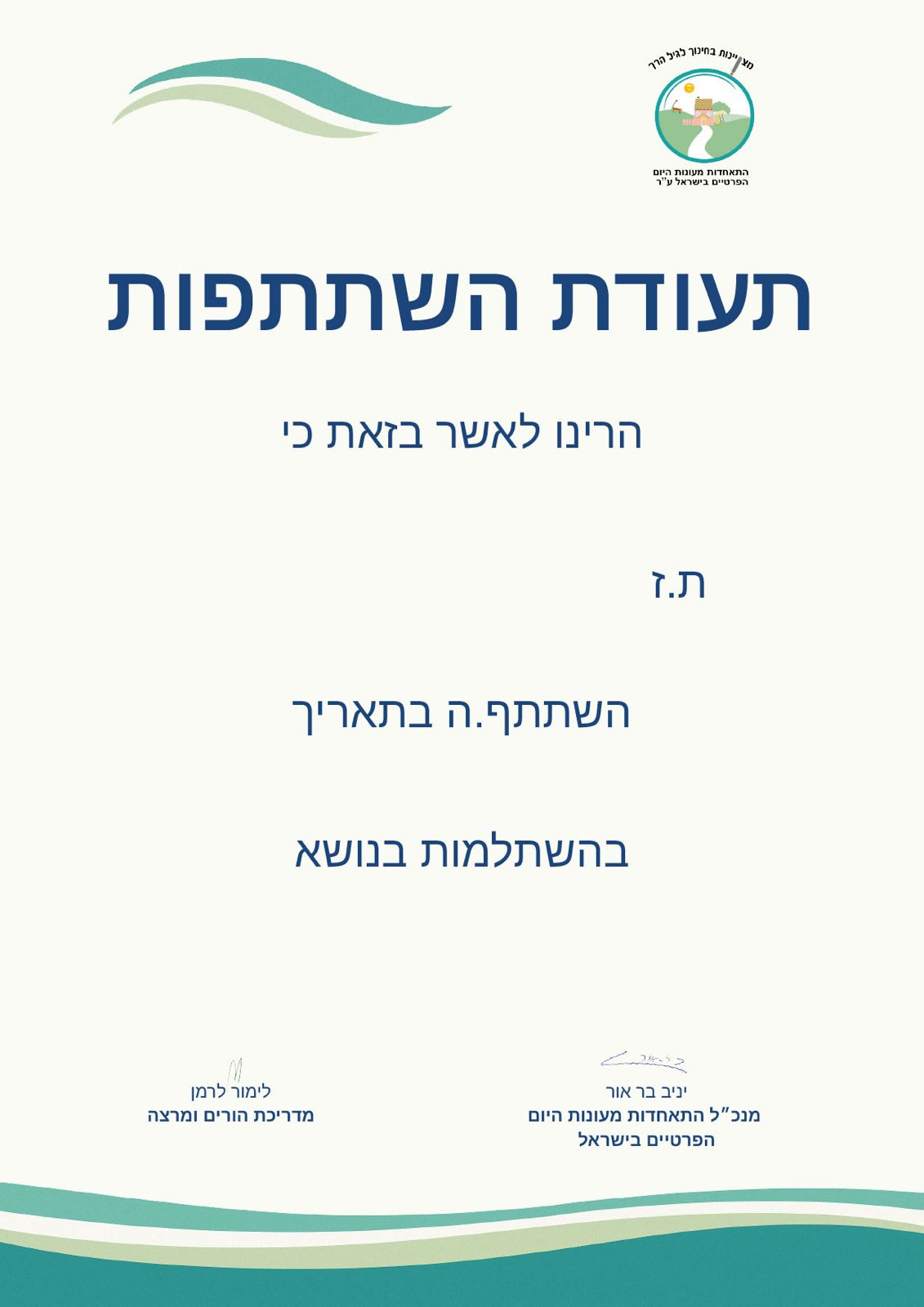 מיועד לחברי התאחדות מעונות היום הפרטיים ועובדיהם בלבד